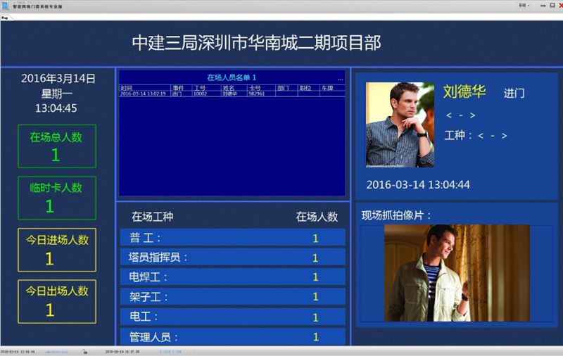 本系统在LED屏上显示刷卡人的姓名,部门,人数,工种、时间、显示出入总人数,欢迎语信息,各部门的人数;各分包公司的部门人数,定制成翻页显示,从本质上讲屏和门禁系统软件没有任何关系,屏有以下部分组成:LED屏(分单色、全彩)、通讯控制卡、千兆网卡(要求电脑必须有2个以上网卡插槽)、截屏显示管理软件。